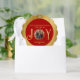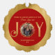 Simple faux foil, elegant and understated family photo "Wishing You A Holiday Season Filled With Peace, Love and Joy" wreath design with centre circular photo Christmas holiday design. Outer ring, letters "J" and "Y" in "Joy", and the leaves encircling the photo are faux foil. Top and bottom text is gold-toned (but not faux foil). Back is blank solid colour with faux foil accent ring. These make great package adornments during the holiday season and gifts to grandparents, other family and friends.