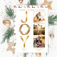 Wishing You Peace, Love and "Joy" Christmas Holiday faux foil gold-toned design featuring a wreath overlaid on the "O" in "Joy" on the left with three photos of your choosing on the right. Simply add the year and your family name to complete the design. The back features a repeat pattern of holiday greenery and berries. Front has a white background. Also available in real gold foil in our shop.
