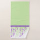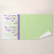 Spring themed bath towel set done in purple, white and green, with graphics of flowering wisteria branches on the bath towel. The hand towel is done in solid purple and the wash cloth is solid light green. Customise to add text to this pretty towel set.