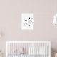 A witch girl flying on a broom with bat silhouettes around her. She is wearing a classic witch hat, flowy dress and black high heel shoes. The minimalist design brings a stylish and contemporary touch to your spooky season décor.