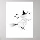 Witch And Bats Simple Line Art Minimal Halloween Poster