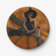 Witch and Cat on Giant Pumpkin Paper Plate