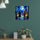 Witch and Clown looking at a Monster Halloween Poster