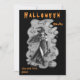 Halloween, a cool illustration featuring a beautiful witch and her doll surrounded by a pumpkin ornate frame. Colours: black and white. The original drawing was made with pencils by artist © E. D. Siffert.