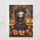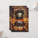 The witch at the heart of the design adds a magical element, capturing the spirit of Halloween with her enchanting presence. She stands amidst the glowing pumpkins, casting shadows and mystery, making the scene both fun and slightly spooky. The jack-o' lanterns light up the dark background, adding warmth and charm to the invitation.