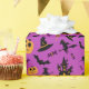 Purple Halloween wrapping paper with pattern of bats, witches, pumpkins and many more spooky things! Colourful and witchy, great for the spookiest season!