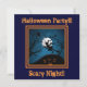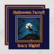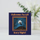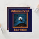 Witch And Spider On Web Halloween Party Invitation. Cool invitation featuring a witch, a spider on web, a spooky tree, jack o Lanterns and bats on deep blue background.