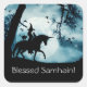 Witch and Unicorn with Blessed Samhain Square Sticker