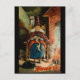 A fantastic vintage Halloween card featuring a witch sitting with her owl and cat at her fireplace.