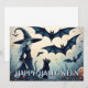 Witch, Black Cat and Bats in Twilight Sky