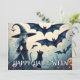 A mystical witch in flowing black stands beside her black cat, under a twilight sky alive with bats. This Halloween artwork blends enchantment and gothic charm, evoking a spellbound world of shadows and whispers.