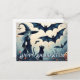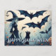Witch, Black Cat and Bats in Twilight Sky Holiday Postcard