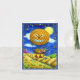 WITCH, BLACK CAT IN HOT AIR BALLOON FOLK ART Verse Holiday Card