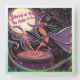 A witch stirs a colourful potion in her cauldron, surrounded by swirling magic, a full moon, and a watching black cat, creating an enchanting Halloween atmosphere.