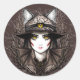 Witch Cat Halloween Creepy Cute Portrait Classic Round Sticker