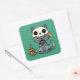 Witch Cat Voodoo Doll on Green Square Sticker