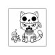 Angry looking cat with tattoo markings, bone necklace, and a skull on top of its head is sitting beside a voodoo doll with pins.