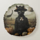 This whimsical Halloween artwork features a stylish black cat dressed as a Victorian witch, surrounded by a quirky array of jack-o'-lanterns under a surreal autumn sky. A perfect blend of spooky and charming, this fantasy print is ideal for Halloween lovers, gothic decor fans, and anyone who enjoys magical realism with a feline twist.