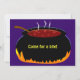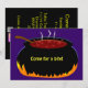 These customisable Halloween party invitations have a black witch's cauldron on the front. It's got some red, bubbling liquid inside and flames underneath. The invitation says, "Come for a bite."