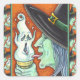 WITCH EATING SCREAMING ICE CREAM CONE, HALLOWEEN SQUARE STICKER