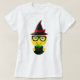 This nerdy witch is holding a bubbly cauldron and wearing glasses and a witch hat. Great shirt to wear on Halloween.