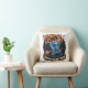 Witch flying over a spooky pumpkin patch at dusk cushion