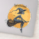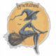 This is a cute halloween sticker that features a witch flying over the full moon on her broom stick. You can customise the default text "bewitched."