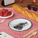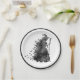 Halloween themed paper plates done in white, with a grey and black ring around the outer edge and watercolor artwork of a creepy looking witch done in black. Customise this plate to add your own text. Matching napkins and paper cups and other party supplies are available.