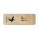 Rectangular address labels with antique parchment background and black halloween witch on broomstick silhouette.