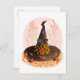 In the orange autumn light, leaves have fallen around a stylish Halloween witch's hat turned fairy tale dwelling. Original illustration by Noël Snow.
