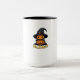 This mug features a spooky Halloween-themed design with a jack-o’-lantern wearing a witch’s hat. The pumpkin has a carved face and sits above the word “HALLOWEEN” written in bold, decorative letters with an orange to yellow gradient. Perfect for enjoying your favourite hot beverages during the Halloween season, this mug adds a festive and eerie touch to your drinkware collection.