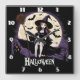 A mystical witch glides gracefully on her broomstick, surrounded by bats and a haunting backdrop, capturing the essence of Halloween night.