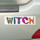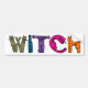 "Witch" spelled out in cute and colourful cartoon Cat Letters, with a white background, on a Bumper Sticker.