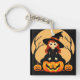 Witch in Halloween Setting with Pumpkins Key Ring