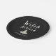 Throw a spellbinding celebration with these stylish Our Witch Is Getting Hitched paper plates. Featuring a hand-painted watercolor black witch's hat and elegant creamy white lettering on a matte black background, these Halloween-themed bridal shower plates are the perfect blend of spooky and sophisticated. Ideal for witchy bachelorette parties or October showers. Complete the look with matching napkins, cups, signage, and decor from the full Witch Is Getting Hitched collection.