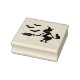 Witch On A Broom With A Cat And Three Bats Rubber Stamp