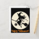 Witch on a broomstick Halloween postcard. Send this postcard flying through the post in the night sky as the full moon shines bright in time for the spookiest night of the year to wish all your friends and family a Happy Halloween, with customisable text to add your own greeeting.