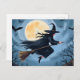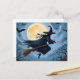 Witch on a Broomstick | Happy Halloween Painted Holiday Postcard