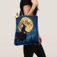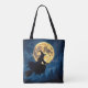 A super cool witch on a broom in front of a full moon Halloween trick or treat bag.