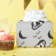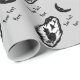 This Halloween picture of a witch flying on her broomstick with her black cat and bat sitting behind her goes great with the black half moon. The pair of Halloween images look great against the pale grey background of this quality Halloween gift wrapping paper, I’m sure anyone who receives a Halloween gift wrapped in this cool Halloween gift wrap will be pleasantly surprised. This is customisable wrapping paper, you can personalise it with your own text.