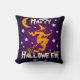 Witch on Front Cat on Back Happy Hallowe'en Purple Cushion