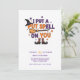 Featuring a witch’s broom, black cat, and glowing pumpkin, this invitation sets the stage for a magical and mysterious Halloween night.