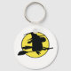 Witch Silhouette Flying on Broom Against Full Moon Key Ring