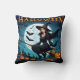 A mysterious witch rides her broomstick under a full moon, surrounded by bats and glowing pumpkins, capturing the essence of Halloween magic.