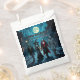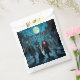 Halloween party paper favour bags with ai art depicting a witch, vampire, mummy and zombie walking through Halloween night with a full moon in a cool comic book style.