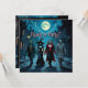 Halloween party invitations with ai art depicting a witch, vampire, mummy and zombie. Ready to party? 2q Add your Halloween party information in the personalise area.
