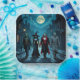 Halloween party paper plates with ai art depicting a witch, vampire, mummy and zombie walking through Halloween night with a full moon in a cool comic book style.