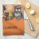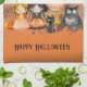 Check this cute Halloween bright orange "Witch Way Is the Kitchen ?" KITCHEN TOWEL featuring monsters, and a cat flying a broom.All text allows for customisation. You can change the Happy Halloween to your Name, or Family name.