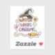 Playful Halloween sticker featuring a witch hat, flying broom, and colourful candies. Perfect mix of cute and spooky for trick-or-treat lovers. Great for Halloween parties, candy lovers, and witchy fun.