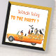 Uniquely designed custom-cut vinyl sticker of Halloween Crew of Cat, Bat, Owls and wicked witch. The illustration has a witch crew off to Halloween party. The TEXT can be easily customised.